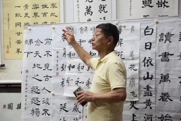 退休书画协会教师给楚艺书法协会学生现场书法指导