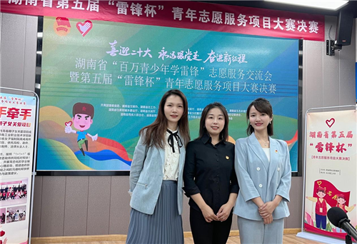 三人在志愿服务项目“省赛”后合影