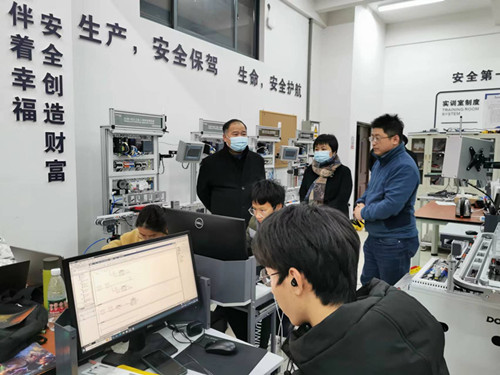 党委书记刘建湘在智能单元机器人应用实训室与师生交谈
