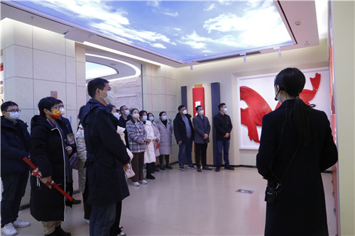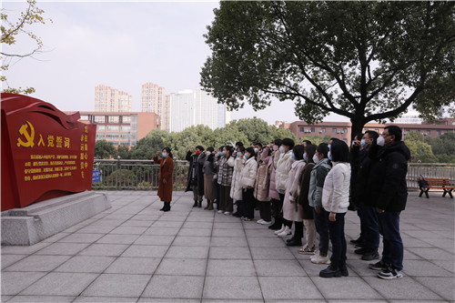 参观完毕,在庄严的宣誓广场,学校党委委员、组织人事部(教师工作部)、党校负责人黄敏带领大家在鲜艳的党旗下重温入党誓词,激励大家不忘初心,永葆清廉本色。