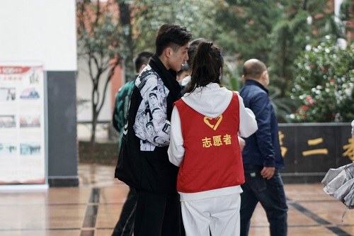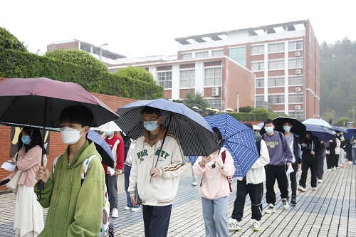 “请同学们排队有序入场。”在考试区,工作人员共同维护考场及其周围的秩序,为考生们创造良好的考试环境。