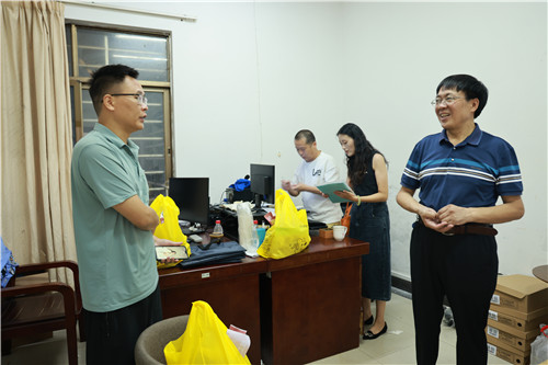 本网讯 8月16日,我校开展为一线教职员工“送清凉”活动,党委委员、副校长侯新华一行看望工作在一线的教职员工,亲切慰问他们的工作生活情况,送上防暑降温用品。