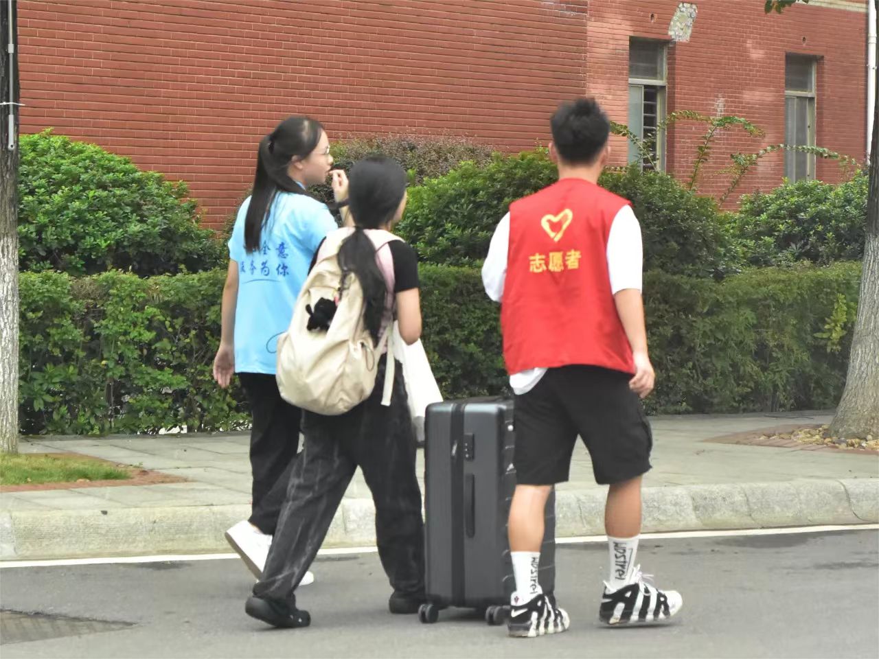 “参加这次活动想到了我大一刚进校时,也是在学长学姐的引导与帮忙下,熟悉校园并履行报到手续。现在我很荣幸成为一名志愿者,能尽力帮助学弟学妹们解决他们的问题。”志愿者肖璇一边帮着新生拎行李,一边耐心地向新生解说新生报到的流程。