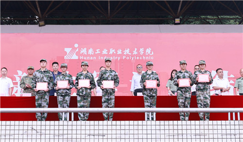 汇报表演结束之后,周梦顺宣读了《关于表彰2023级新生军训工作先进集体及先进个人的决定》,汽车工程学院、工业设计与艺术学院荣获军训先进工作单位称号,一营二连等14个连队荣获优秀连队称号,盛毅等3人荣获军训优秀教导员称号,罗啟关等20人荣获军训优秀教官称号,张平等9人荣获军训优秀跟训班主任称号,刘明耀等506名同学荣获军训优秀个人称号。校领导为获表彰的集体和个人颁奖。