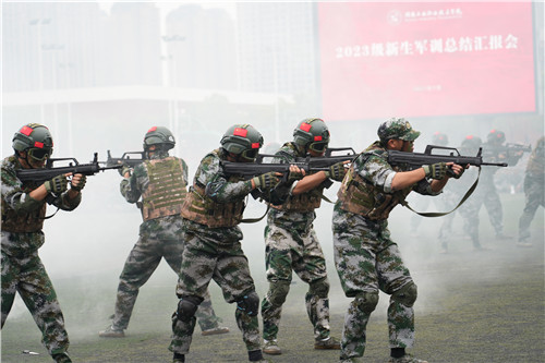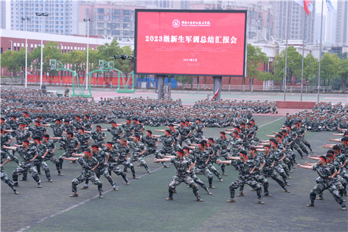 本网讯9月30日上午,2023级新生军训总结汇报会在我校田径场隆重举行。校党委书记刘建湘、副校长周梦顺、军训团团长彭利民,相关职能部门负责人,二级学院院长、党总支书记、副书记,新生班级辅导员、班主任,2023级全体新生参加。总结汇报会由副校长成涛主持。