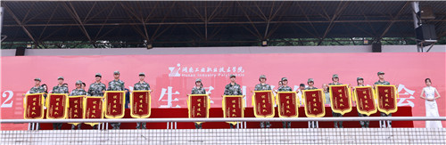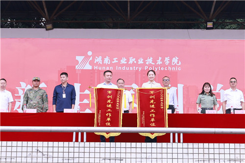 刘建湘代表学校向承训单位赠送锦旗。