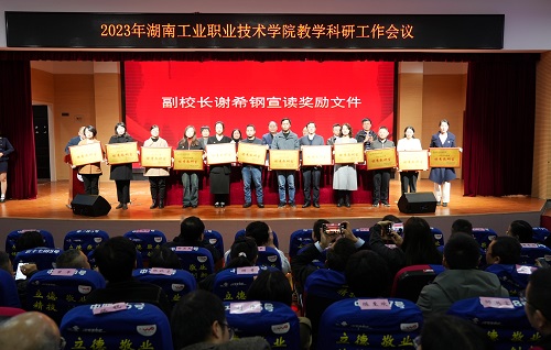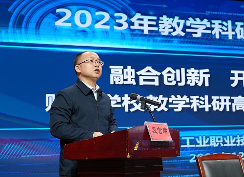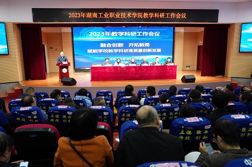 学校党委书记刘建湘做题为《融合创新开拓新局——赋能学校教学科研高质量创新发展》的工作报告。他介绍了学校教学科研工作会议的主要任务,从专业发展体系形成新格局、深化产教融合呈现新局面、卓越师资队伍释放新活力、科研创新成果取得新突破、人才培养水平实现新攀升、国际交流合作呈现新态势六个方面全面总结了学校 2023 年教学和科研工作取得的成绩与经验,并指出当前存在的主要问题。他对学校2024年教学科研重点工作做了六点安排:要坚持党建引领,传承楚怡精神,弘扬工匠精神;要进一步优化高水平专业群体系,增强职业教育适应性,打造国内一流高水平专业群;要进一步创新产教融合校企合作机制,形成产教发展命运共同体,提升服务辐射能力;要进一步夯实职业院校关键办学能力,提升教师教学能力,探索人才培养模式改革;要进一步提升面向产业的核心服务能力,构筑多层次科研平台,建设高素质科研团队,全方位实现成果转化与服务;要进一步提升办学国际影响力,深化服务湖南装备制造“走出去”人才培养培训,优化升级中外合作办学和境外合作办学。他强调,要多措并举、压实责任、创造条件、打破壁垒,聚焦“教学”“教研”“科研”“教师”四个关键维度,持续推进教育教学综合改革,赋能学校教学科研高质量创新发展。