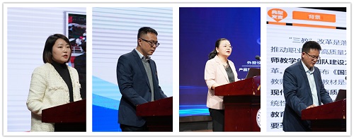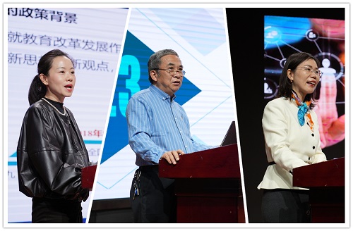 会上,十位代表从不同角度做学校教学科研工作典型发言。围绕院系、专业、课程、教材、队材、团队“五项建设”主题,机械工程学院院长李德尧介绍了机械工程学院的发展实践,机械工程学院教授、专任教师龚娟做课程改革典型发言,电气工程学院副院长何其文介绍了团队建设经验,信息工程学院教研室主任杨幸介绍了云计算技术应用专业发展的方向,工业设计与艺术学院副院长刘琛做学校数字化教材建设典型发言。围绕“三教改革”“三全育人”“课程思政”主题,汽车工程学院党总支书记龚艳丽从讲解了如何打造职业教育示范金课,经济管理学院教研室主任谌岚做三全育人典型发言,商务贸易学院副院长吴代文做三教改革典型发言。围绕“科研成果申报”“反哺教学”主题,电气工程学院研究员级高级工程师、专任教师李永丰做科研成果申报典型发言,机械工程学院教研室主任熊志林讲解了技术服务实践反哺教学的路径。