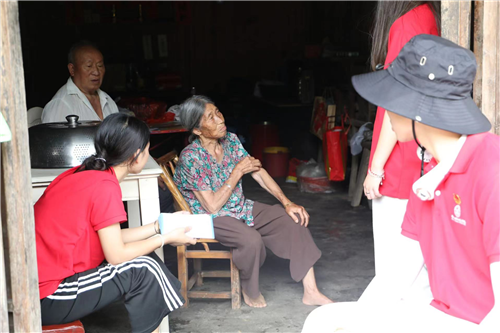 实践团成员针对心搏骤停、气道梗阻等日常生活中可能遇到的危急情况,讲解了心肺复苏的正确步骤和操作技巧,并借助CPR(心肺复苏)模拟人,以互动的方式进行现场模拟操作。“我们村里常年在家的村民都是老人和小孩,对一些基本的急救知识比较欠缺,你们教的这些知识非常实用。”头车村党支部书记邓世龙满意地说道。