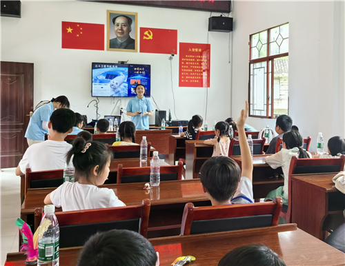 三下乡期间,“‘工’技融合 创新无限”科技小分队队员们在头车村村民服务中心开展了“感受中国科技的神奇”主题科普宣讲小课堂。队员邓玲丽以视频+图文结合的形式,向小朋友们讲述了中国在人工智能、航空航天、高铁技术等领域所取得的突破性进展,通过播放《坐标中国》视频让小朋友们感受中国科技发展的非凡十年。在互动环节,小朋友们踊跃发言表达自己的感想,“太厉害了!祖国越来越强大了!我一定要努力学习,希望将来也去造飞机、卫星!”