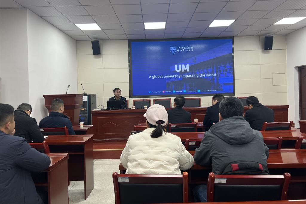 本网讯 近日,我校邀请马来西亚马来亚大学教授TAN CHOU YONG来校作学术报告。学校组织人事部、机械工程学院、电气工程学院、汽车工程学院、信息工程学院和国际教育学院相关负责人及教职工代表听取了学术报告,并与TAN CHOU YONG教授进行了深入交流。