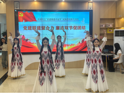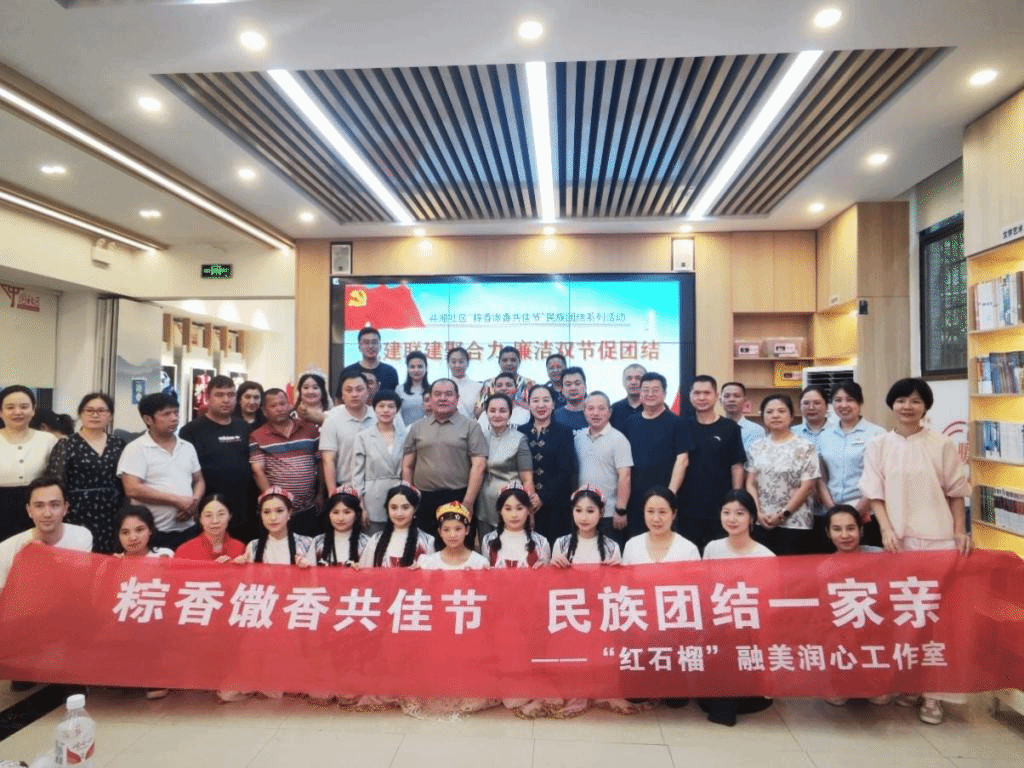 本网讯 包粽子、做香囊、绣苗绣……5月27日,我校“红石榴”融美润心工作室师生受邀参与新疆驻湖南工作组、长沙市雨花区井湾子街道井湘社区联合举办的“粽香馓香共佳节民族团结一家亲”活动。活动以优秀传统文化为纽带,通过歌舞表演、非遗展示、民俗体验等形式,生动展现了新时代民族团结进步事业的蓬勃生机。