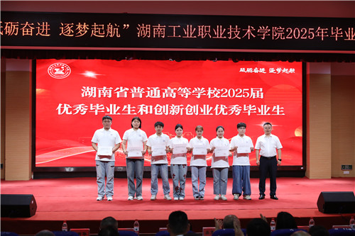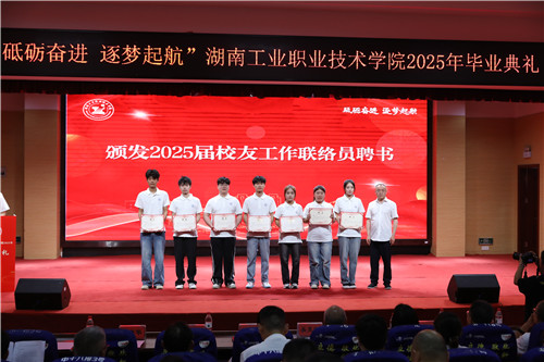 学校党委副书记成涛宣读《湖南省教育厅关于公布湖南省普通高等学校2025届优秀毕业生和创新创业优秀毕业生名单的通知》,我校徐启智等133名学生获评湖南省普通高等学校2025届优秀毕业生称号,李平安等15名学生获评湖南省普通高等学校2025届创新创业优秀毕业生称号。学校副校长谢希钢宣读《关于表彰2025届学校优秀毕业生和创新创业优秀毕业生的决定》,我校吴鹰等202名学生获评2025届学校优秀毕业生称号,宁彪等19名学生获评2025届学校创新创业优秀毕业生称号。学校副校长邹太平宣读《关于聘请2025届校友工作联络员的决定》并颁发聘书,刘建鹏等117名毕业生被聘为校友工作联络员。