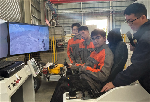 在山河智能工作人员的引导下,师生们参观了山河智能企业文化展厅,沉浸式体验企业从初创到强大的发展轨迹。在宽敞明亮的现代化装配工厂,当听到工作人员介绍“一台挖掘机从组装到下线只需要20分钟”时,同学们深刻感受到了中国装备制造业的雄厚实力和自主创新活力。随后,大家重点观摩了山河智能自主研发的基于数字孪生的旋挖钻机模拟培训平台和智能钻机、无人矿卡5G远程遥控应急接管平台。先进的数字化技术、智能化的管理方式,展现了山河智能在科技创新领域的领先地位和对发展先进制造业的责任担当。