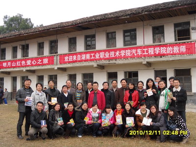 2010年12月11日,我院汽车工程学院的教职员工利用明月山之旅的机会,在旅途中积极参与了由江西省宜春市爱心志愿者协会、明月山管委会主办,湖南宝中旅游和长沙乐行都市车友俱乐部承办的明月山•红色爱心之旅捐书活动,长沙晚报、潇湘晨报、三湘都市报、长沙移动电视台、湖南交通音乐频道、长沙星辰在线论坛、宜春电视台、宜春日报等多家媒体进行了全程报导。