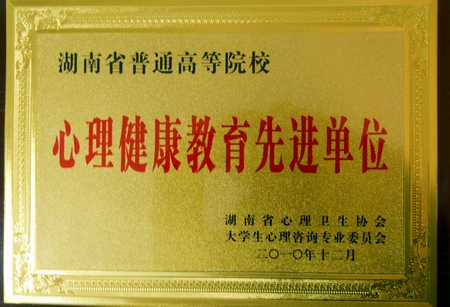 我院心理健康教育中心被评为“湖南省高校大学生心理健康教育先进单位”