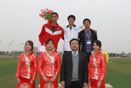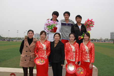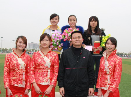 学院体育艺术部部长周文为获奖选手颁奖后合影