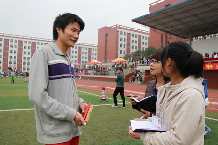 采访获奖选手——大学生记者团的成员们一早开始活跃在各比赛现场