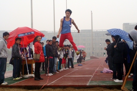 有这么一位飞人:他以10秒89刷新了我院男子100米纪录,在男子跳远中跳出了6.9米的好成绩,再一次打破了校运会纪录。这位飞人就是本届田径运动会机械6队的易明。据了解,易明在我省第九届大运会上获得男子组跳远金牌、男子组100米第五的好成绩。