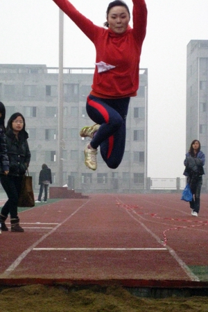 商贸1队胡轶摘得女子跳远桂冠,并以5.14米打破了校运会纪录。同时,胡轶也在我省第九届大运会中获得跳远和三级跳远的铜牌。