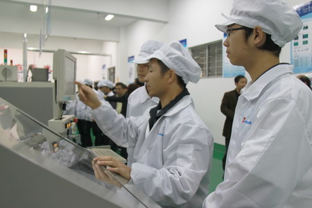 “富士康SMT班”学生正在操作捐赠的生产设备