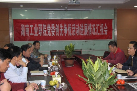 在我院第二会议室,夏智伦一行仔细听取了学院党委创先争优工作情况汇报。学院党委书记廖洪元介绍说,我院党委按照省教育工委创先争优活动的精神,紧紧围绕“建设国家示范性高职和全面提高教育教学质量”主题,主要做了以下工作:一是加强领导,制定方案;二是广泛动员,提高认识,层层动员;三是加强宣传,营造良好气氛;四是重视公开承诺,抓好领导点评;五是创新载体,围绕“讲奉献,谋发展,促和谐,建示范,创一流”的主题,在教育教学、学生管理、社会服务、人文关怀、管理五个方面进行创先争优,取得的阶段性成效。他说,在下一步工作中,要继续抓好公开承诺,要做到承诺高起点,高要求,要与具体工作相结合,切实可行。要进一步抓好领导点评,各级点评领导要围绕公开承诺进行点评,要促进公开承诺兑现。会上,廖书记和院长刘建湘还就本人践行公开承诺的相关情况做了汇报。