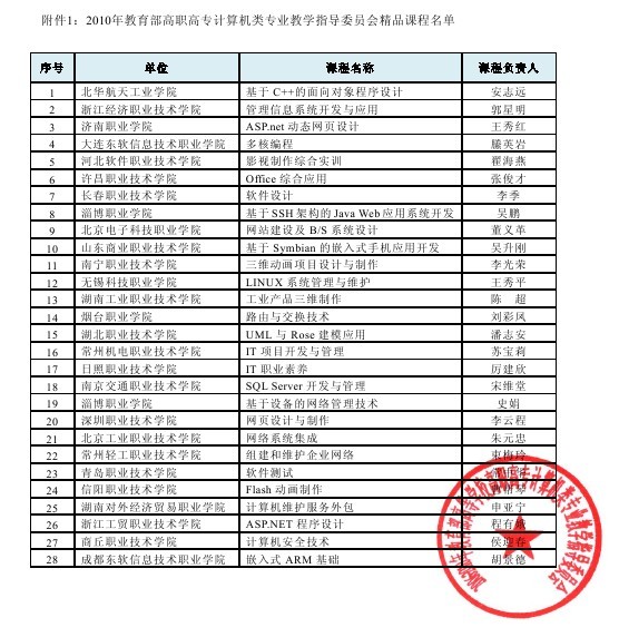 近日,教育部高职高专计算机类专业教学指导委员会公布了2010年精品课程评审结果,信息工程系陈超教授主持的“工业产品三维制作”课程被评审为2010年教育部高职高专计算机类专业教学指导委员会精品课程。精品课程是教育部“质量工程”的重要组成部分,是具有一流教师队伍、一流教学内容、一流教学方法、一流教材、一流教学管理等特点的示范性课程。