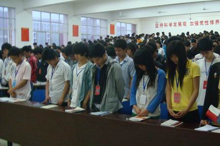 党校学员在汶川地震两周年纪念日为遇难同胞默哀