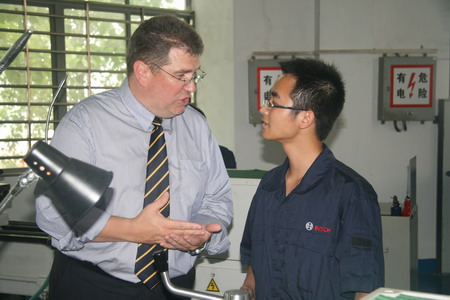 博世汽车部件有限公司总经理Wunstorf现场指导学生实训