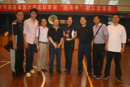为促进高职学院之间的交流和友谊,推动高职学院教职工体育活动蓬勃发展。5月28 日,由湖南省高等职业体育工作研究会主办的2010年湖南省高职学院“院长杯”教职工篮球赛在湖南现代物流职业技术学院拉开帷幕,今年共有7所高职学院代表队参加。我院党委书记廖洪元、院长刘建湘、党委副书记龙承海、副院长王柏林、副院长刘继平、工会主席张志勇等领导带队参赛。我院队员顽强拼搏,经过几场激烈角逐,最终荣获“院长杯”篮球赛二等奖。
