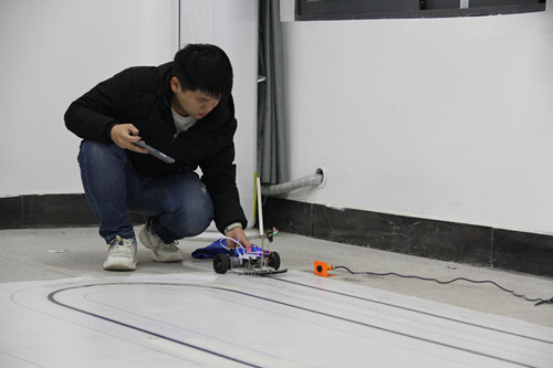 经过激烈比拼,物联网应用技术2020-3班的刘志华和罗从善同学的小车以16秒零7的绕圈时间荣获“智能循迹小车”赛项一等奖。刘志华表示,参加此次比赛是想挑战自己,检测自身的专业基础是否扎实,未来,他将努力钻研技能,在专业成长的道路上不断前进。