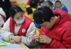 “春雨”志愿服务队为服务对象讲解知识,并指导手工制作