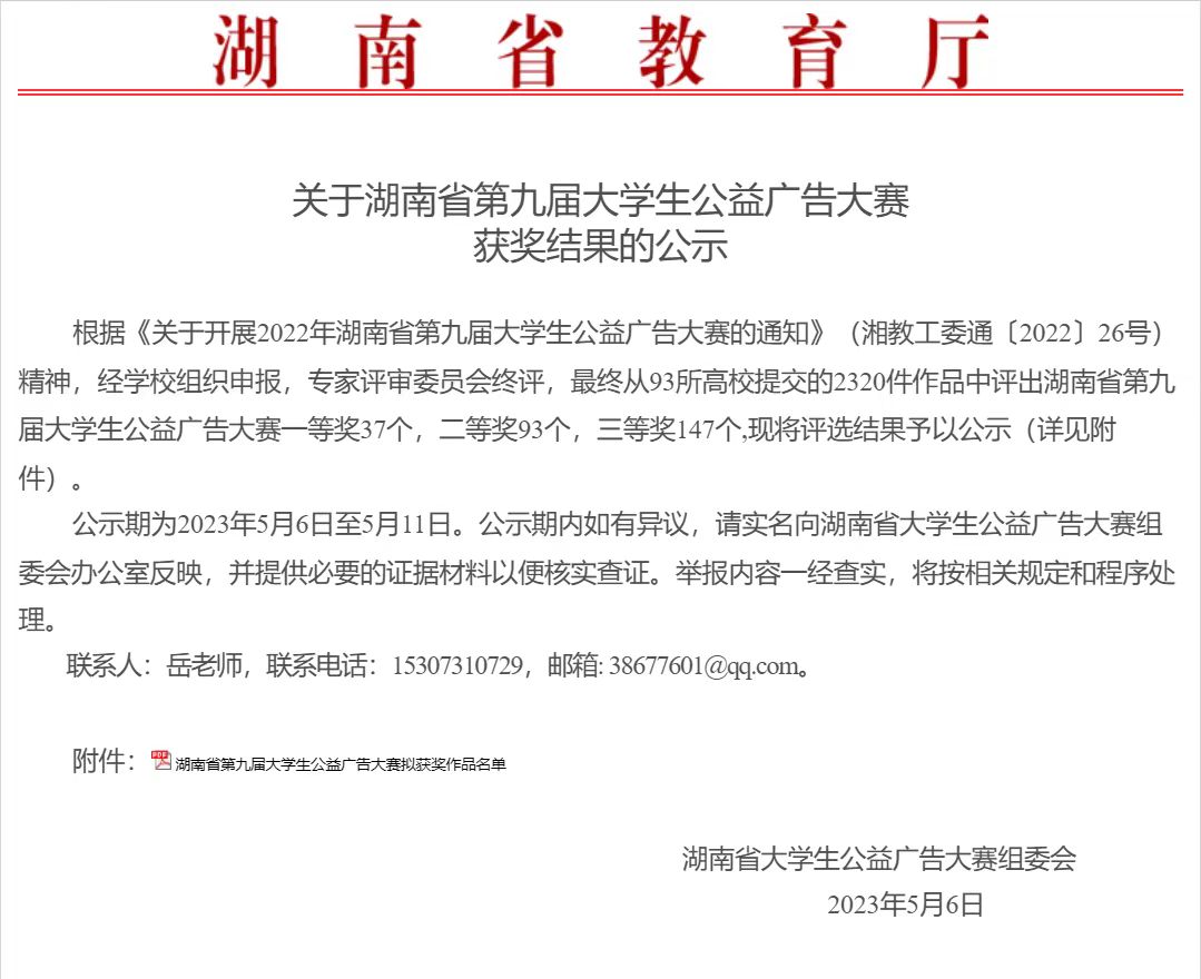 我校学子在湖南省第九届大学生公益广告大赛中斩获佳绩