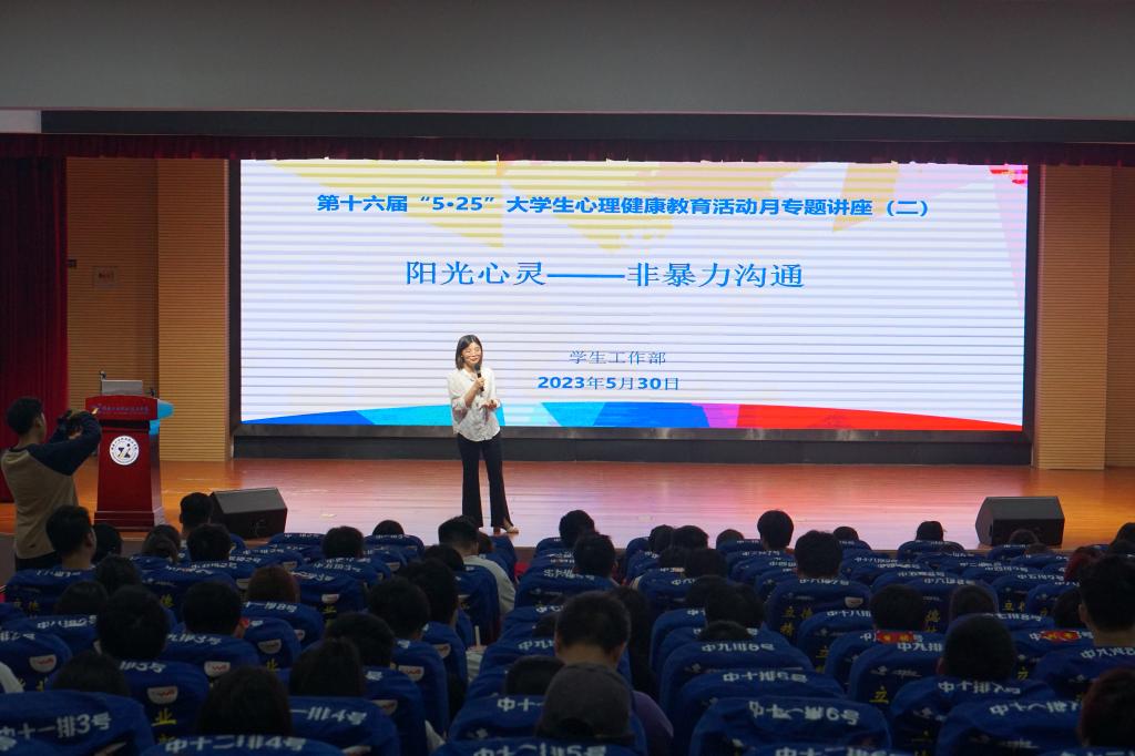 本网讯 “情绪原来是表达我们的需求的方式”、“不同的沟通方式带来的结果截然不同。”近日,学校心理健康教育与咨询中心在学校尚善楼1102开展了“阳光心灵——做情绪的好朋友”和“阳光心灵——非暴力沟通”心理健康教育专题讲座,学校350余名学生参加本次讲座。