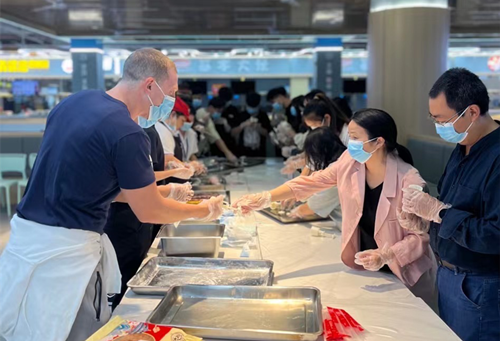 活动现场,谢希钢向留学生介绍了中秋节的习俗,食堂工作人员则演示了制作冰皮月饼的方法。大家纷纷拿起工具,兴致勃勃地制作属于自己的月饼。很快,一个个小巧、精美的冰皮月饼就在大家手中诞生。食堂工作人员还为大家准备了传统月饼,让留学生们感受地道的中秋氛围。外教和留学生纷纷表示,这是他们第一次亲手制作月饼,让他们更深入体会到了中华优秀传统文化的魅力。