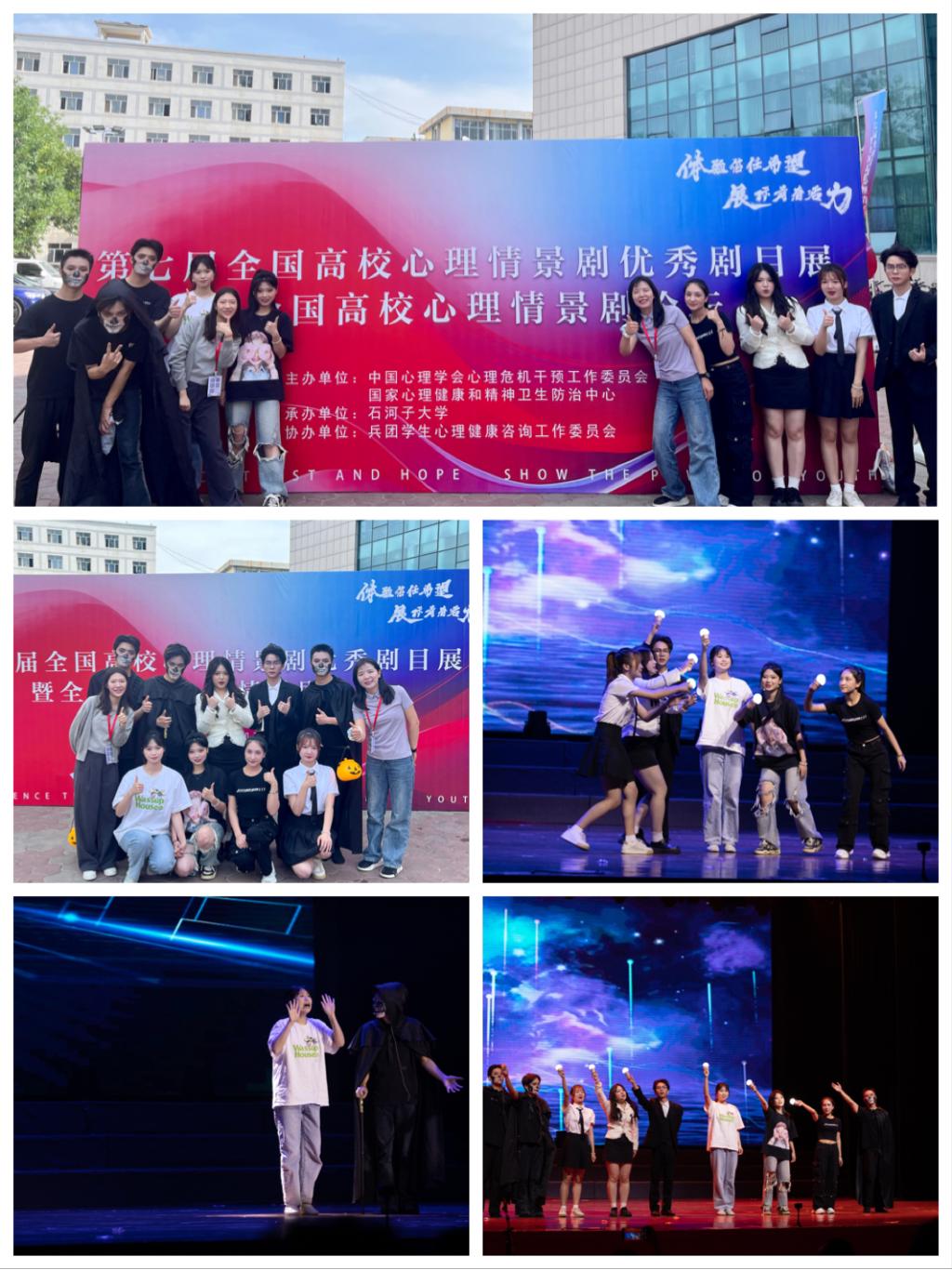 本网讯 5月30日至6月1日,第七届全国高校心理情景剧展演暨全国高校心理情景剧论坛在新疆石河子大学举行。我校推选的作品《成长》,与北京大学等31所本专科学校同台竞技,最终荣获三等奖,湖南省仅中南大学与我校两所高校进入现场展演。
