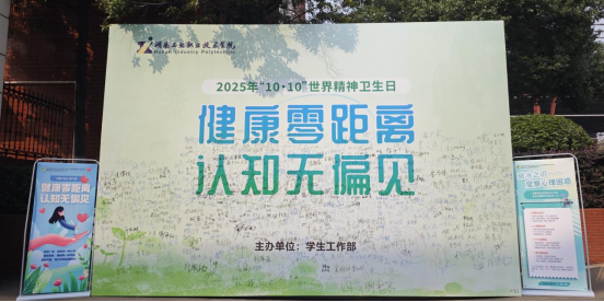 世界精神卫生日主题签名与心理科普宣传活动中,同学们认真观看了“健康零距离 认知无偏见”科普知识展,并在签名墙上郑重留下姓名,进一步强化了“人人享有心理健康服务”的意识。