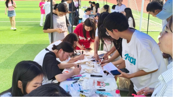 新生心灵启航活动围绕“自我觉察—自然疗愈—团队协作—心声传递”的主线进行。在“我的能量自画像”环节,同学们用彩笔勾勒情绪轮廓,在色彩与线条中完成了一次与自我的深度对话;“秋日自然印记”植物拓染活动中,大家亲手将花叶的自然肌理拓印在帆布袋上,感受自然的疗愈力量;“背靠背,心连心”协作运球游戏不仅考验配合,更拉近了彼此心灵的距离;而“健康零距离 认知无偏见”心理知识有奖竞答区,同学们在紧张有趣的答题中破除偏见、收获成长。活动现场还设置了心声留言墙,同学们写下心理调适心得与情绪管理方法。