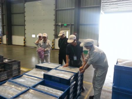 调研组专业教师在企业收货缓存区现场指导学生实习