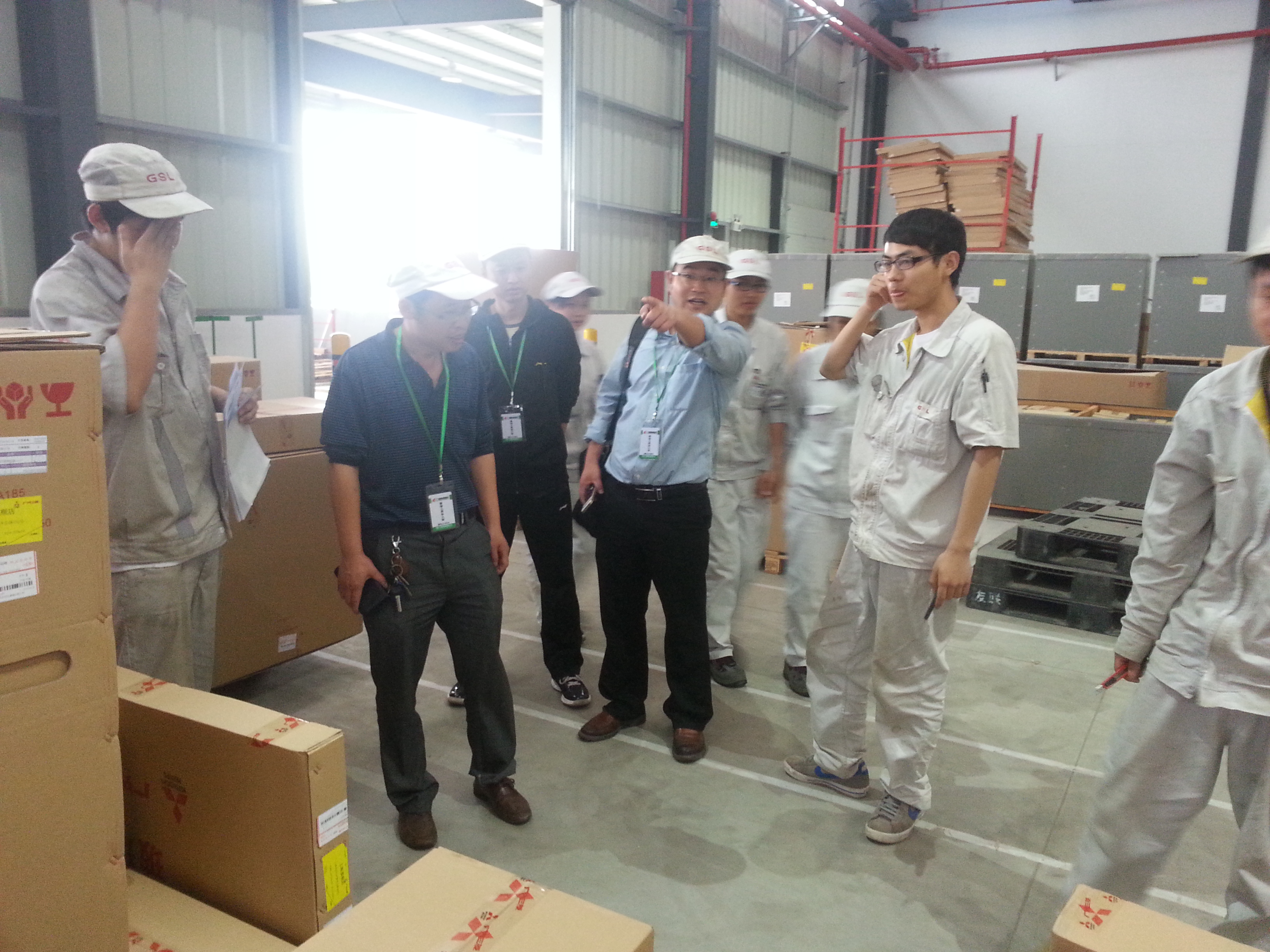 调研组专业老师在广汽日邮公司半成品仓库现场指导学生实习