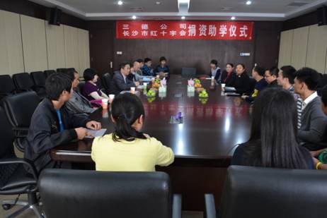 交流会上,三德科技公司管理部经理杨静详细介绍了公司的发展史以及企业文化,并代表三德公司向受助十位学生每人颁发了1000元助学金。学院对外合作交流处处长彭跃湘代表学院感谢湖南三德科技股份有限公司给予学院优秀贫困生的经济支持,介绍了学院的办学实力和发展情况,总结了四年来和湖南三德科技股份有限公司开展校企合作项目的累累硕果,并表示学院今后将做好有关工作,促进校企合作的不断深化;彭跃湘处长希望受助学子能够在湖南三德科技股份有限公司的关爱下,努力学习,奋发进取,学有所成,回报社会。