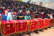 苗治田宣读了2013级团学表彰决定:经管系荣获“最佳组织奖”、电气工程系荣获“优秀集体奖”、学生会女生部荣获“先锋部门”;丁颖等23名学生获得优秀学员称号,杨岩铭等28名学生获得优秀心得奖。随后,在全场热烈的掌声中,各学员代表依次上台领奖。