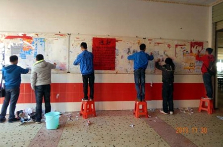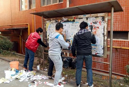 随着大学生活的开放性增强,同学们的课余活动越来越多,更多的活动资金得益于校外商家的赞助。但商家赞助学生活动的同时也给我们的校园带来了一些小广告。时间一长,没有清除干净的小广告不断积累,严重影响了校园环境。为了彻底清除校园“小广告”,11月30日清晨,汽车机械分党校第6期培训班的学员们自发地组织起来,一起和这些被遗忘的“牛皮癣”展开了战斗。
