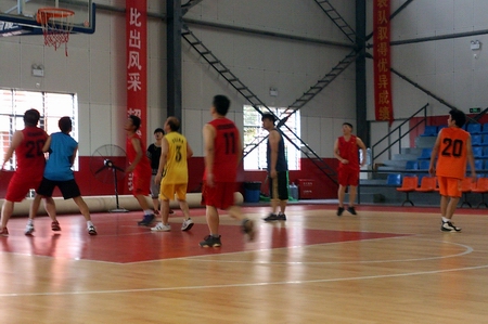 为增进校企文化交流,推动校企合作,7月5日下午,信息工程系与湖南山猫卡通有限公司以球会友,在我院训练馆进行了一场篮球友谊赛。