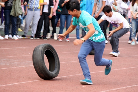 趣味运动项目 滚轮胎接力赛