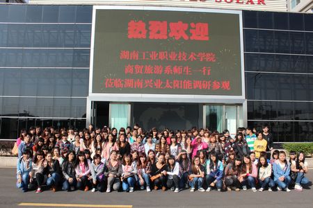 根据教学安排,我院商务英语专业2010级全体同学于近日前往湖南兴业太阳能科技有限公司进行了调研、学习和观摩。学院对外办、商贸旅游系负责人及商务英语教研室主任、专业教师一同参加了调研。