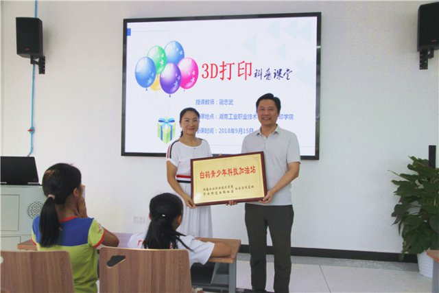 这是由工业职院与岳麓区白鹤社区合作开展的 " 区校共建 3D 打印科普体验 " 活动中的一幕。