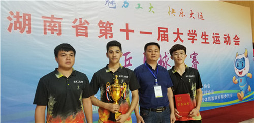 本网讯 9月30日,湖南省第十一届大学生运动会在湖南工业大学落下帷幕。我校代表团由学校纪委书记王波任团长,共组织78名学生运动员参加了男女篮球、女子排球、田径、武术、乒乓球、羽毛球等比赛项目的角逐,获“校长杯”“优秀代表团”等荣誉称号。“校长杯”是本届大运会为竞赛成绩特别突出的代表团颁发的最高荣誉奖杯。