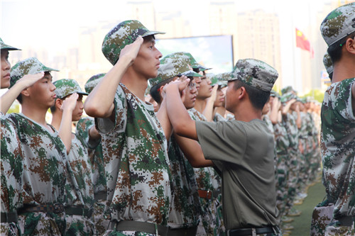 训练时,他们头顶烈日挥洒汗水,个个神采奕奕,斗志昂扬。军姿站不稳,军帽端不平,走路不整齐等一系列不标准的动作在教官示范、手把手挨个纠正下,慢慢显露出军人的身影。