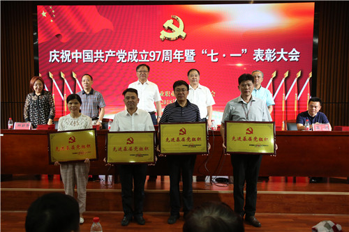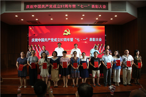 本网讯 7月3日下午,我校庆祝中国共产党成立97周年暨“七·一”表彰大会在图书馆报告厅顺利召开,校领导、全体中层干部、教职工党员代表、学生党员代表、新党员代表共300余人参加本次大会,大会由党委副书记陈超主持。